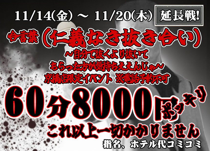 | お電話お待ちしております。 TEL.06-6809-3595 OPEN AM10:00~AM5:00 年中無休 |