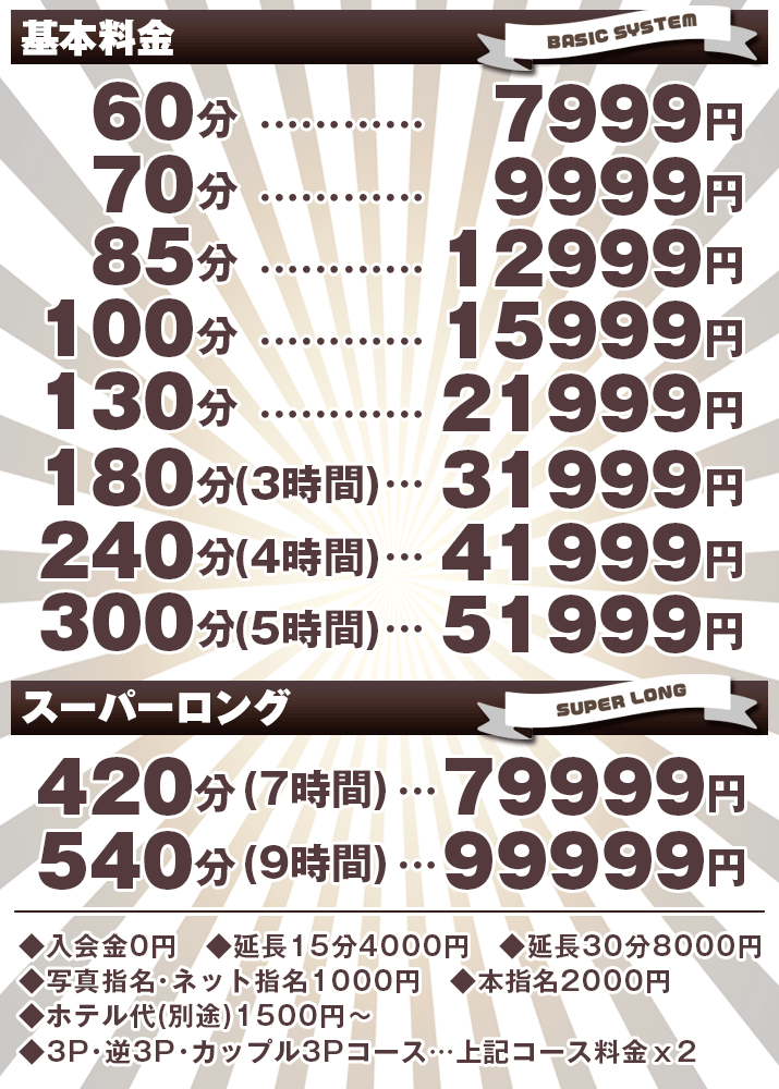 ※キャンセルのご連絡を頂けない場合はお客様よりキャンセルをされたものとさせて頂き本意ではございませんが、ご利用料金の全額を違約金とし、お支払いをお願いしております。 ※当店では女子コンパニオンに月一度の性病検査を義務付けております