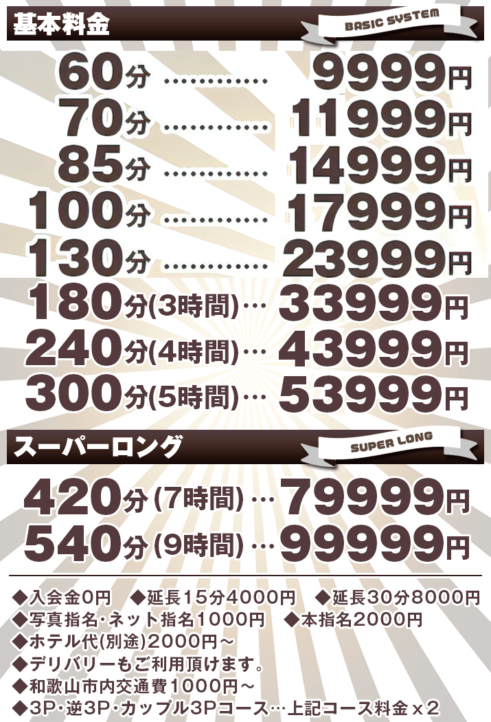 | お電話お待ちしております。 TEL.073-421-3702 OPEN AM10:00〜AM3:00 SUNDAY CLOSE 24:00 年中無休 |